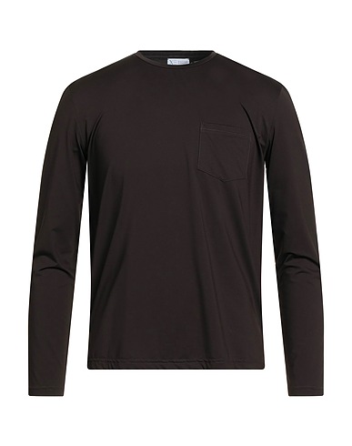 basic tee, woven, stretchy fabric, solid color, no appliqués, crewneck, long sleeves, one chest pocket, machine wash or dry clean, do not bleach, do not tumble dry