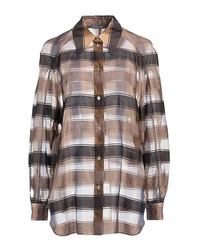 shirt, organza, checked, brand logo, classic collar, long sleeves, buttoned cuffs, button fastenings, contains non-textile parts of animal origin, hand wash or dry clean, do not bleach, do not tumble dry