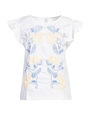 top, woven, floral-print, embroidered, crewneck, short sleeves, stretch, machine wash or dry clean, do not bleach, do not tumble dry