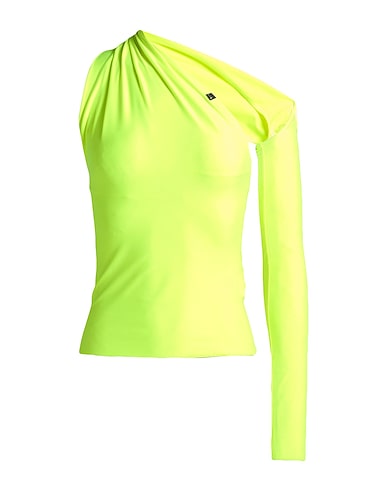 one-shoulder top, synthetic jersey, neon, solid color, brand logo, fully lined, stretch, machine wash, do not bleach, do not tumble dry