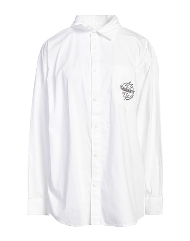 shirt, woven, solid color with appliqués, embroidered logo, classic collar, long sleeves, buttoned cuffs, button fastenings, one chest pocket, machine wash, do not bleach, tumble dry