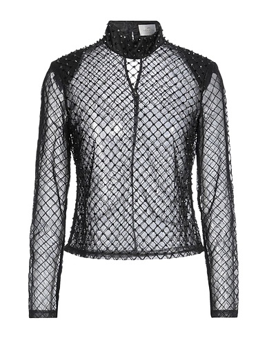 top, tulle, solid color with appliqués, crystals, turtleneck, long sleeves, hand wash, do not bleach, do not tumble dry