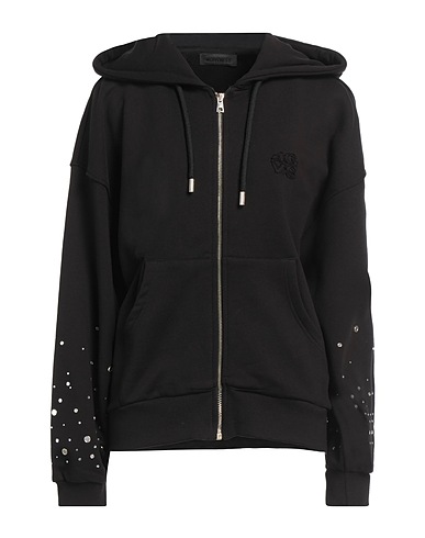 french terry, solid color with appliqués, crystals, hooded, long sleeves, zipper fastening, multipockets, machine wash or dry clean, do not bleach, do not tumble dry, this brand runs large