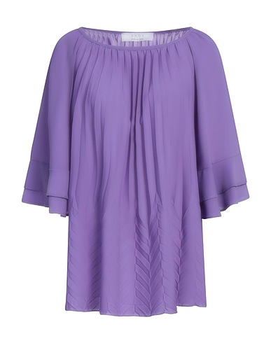 top, crepe, solid color, pleated, crewneck, 3/4 length sleeves, machine wash or dry clean, do not bleach, tumble dry