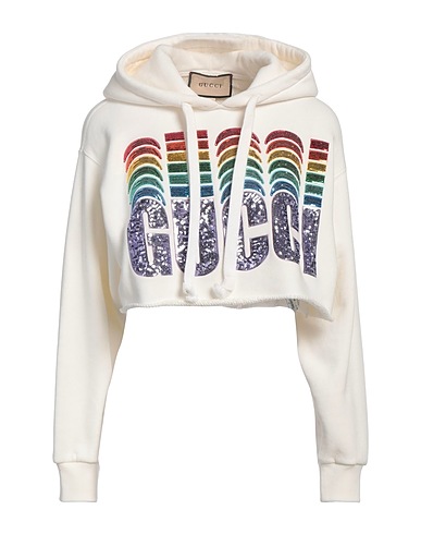 french terry, solid color with appliqués, brand logo, sequins, cropped, hooded, long sleeves, hand wash, do not bleach, do not tumble dry