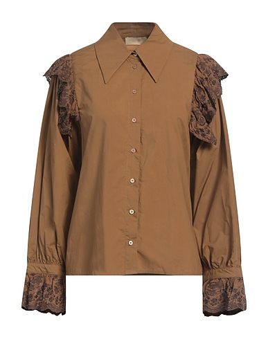 ruched shirt, poplin, broderie anglaise, solid color, ruffles, no appliqués, classic collar, long sleeves, button fastenings, hand wash, do not bleach, do not tumble dry