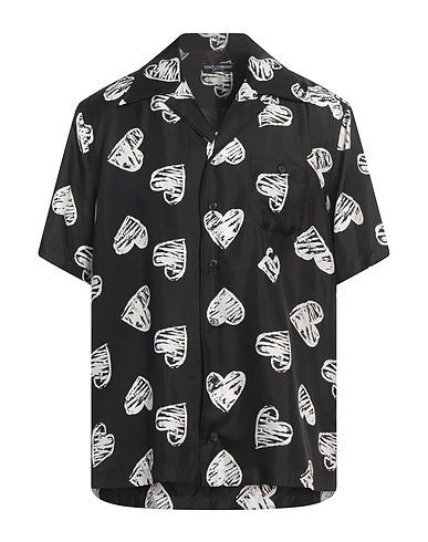 regular-fit shirt, satin, two-tone, no appliqués, camp collar, short sleeves, button fastenings, one chest pocket, dry clean, do not bleach, do not tumble dry, this brand runs large