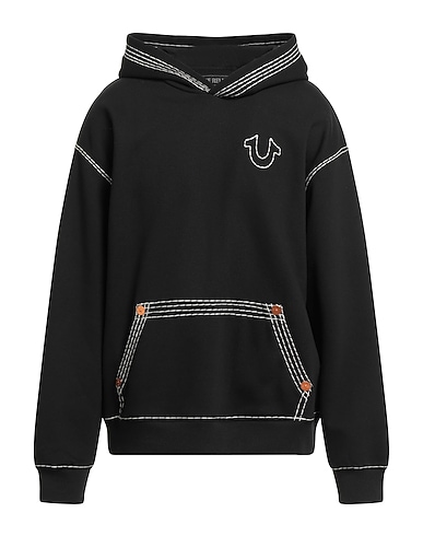 fleece, solid color with appliqués, brand logo, embroidered, hooded, long sleeves, kangaroo pocket, machine wash, do not bleach, tumble dry