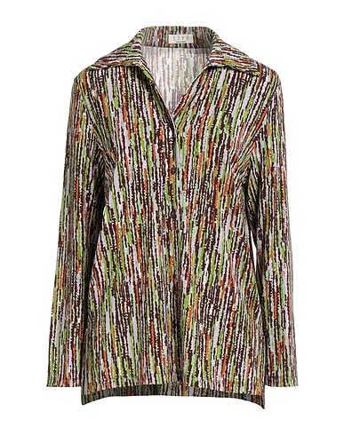 jersey, stretchy fabric, multicolor, no appliqués, buttoned neckline, long sleeves, dry clean, do not bleach, do not tumble dry