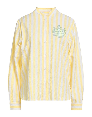 shirt, seersucker, striped, brand logo, mandarin collar, long sleeves, buttoned cuffs, button fastenings, side slit hemline, machine wash, do not bleach, do not tumble dry