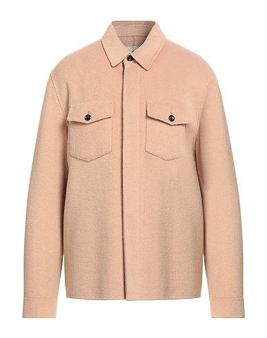 overshirt, brushed-felt, solid color, no appliqués, classic collar, long sleeves, buttoned cuffs, button fastenings, two chest pockets, dry clean, do not bleach, do not tumble dry