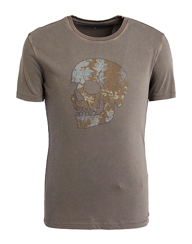 printed t-shirt, jersey, solid color with appliqués, embroidered, crewneck, short sleeves, machine wash, do not bleach, tumble dry, this brand runs large