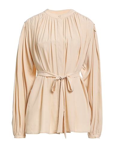 shirt, crepe, solid color, belt, mandarin collar, long sleeves, buttoned cuffs, concealed button fastenings, hand wash or dry clean, do not bleach, do not tumble dry