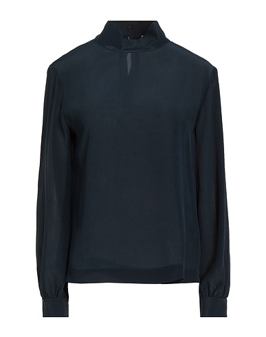 top, crepe, solid color, no appliqués, turtleneck, long sleeves, buttoned cuffs, button fastenings, dry clean, do not bleach, do not tumble dry