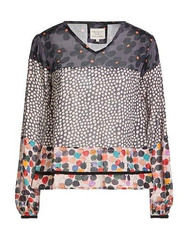 top, woven, polka-dot, no appliqués, v-neck, long sleeves, machine wash, do not bleach, do not tumble dry