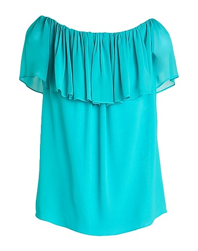 off-the-shoulder top, crepe, solid color, tiered, short sleeves, dry clean, do not bleach, do not tumble dry