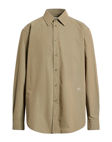 regular-fit shirt, woven, solid color, embroidered logo, classic collar, long sleeves, buttoned cuffs, button fastenings, contains non-textile parts of animal origin, dry clean, do not bleach, do not tumble dry