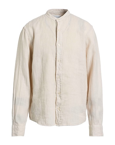 regular-fit shirt, linen, solid color, embroidered logo, mandarin collar, long sleeves, buttoned cuffs, button fastenings, machine wash, do not bleach, do not tumble dry, this brand runs small