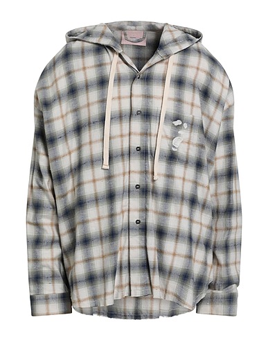oversized shirt, flannel, tartan pattern, no appliqués, hooded, long sleeves, buttoned cuffs, button fastenings, hand wash or dry clean, do not bleach, do not tumble dry