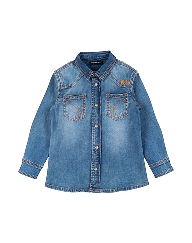 denim, faded, solid color, embroidered logo, medium wash, classic collar, long sleeves, snap fastenings, two chest pockets, stretch, machine wash, do not bleach, do not tumble dry