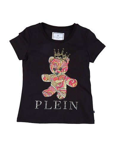 jersey, stretchy fabric, solid color with print, crystals, brand logo, crewneck, short sleeves, hand wash, do not bleach, do not tumble dry