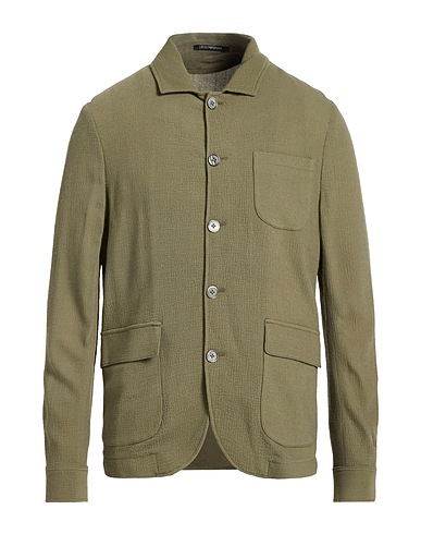 overshirt, seersucker, solid color, no appliqués, classic collar, long sleeves, buttoned cuffs, button fastenings, one chest pocket, flap pockets, contains non-textile parts of animal origin, dry clean, do not bleach, do not tumble dry