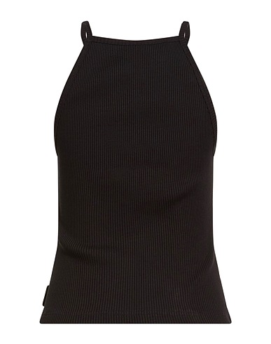 top, ribbed jersey, stretchy fabric, solid color, no appliqués, square neckline, sleeveless, hand wash or dry clean, do not bleach, do not tumble dry