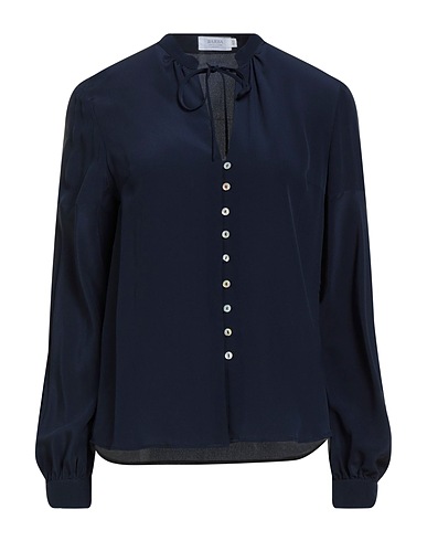 shirt, crepe, solid color, gathered, mandarin collar, long sleeves, button fastenings, hand wash or dry clean, do not bleach, do not tumble dry
