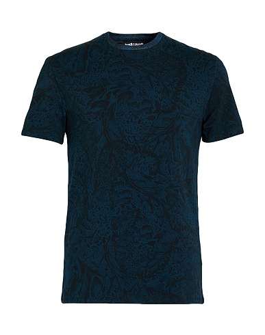 printed t-shirt, jersey, stretchy fabric, two-tone, brand logo, crewneck, short sleeves, hand wash or dry clean, do not bleach, do not tumble dry
