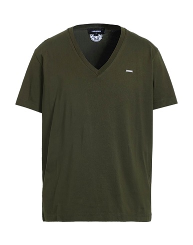 basic tee, jersey, solid color, brand logo, v-neck, short sleeves, machine wash or dry clean, do not bleach, do not tumble dry