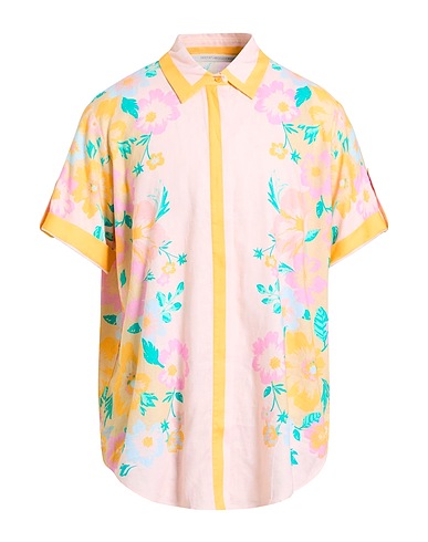 shirt, woven, floral-print, no appliqués, classic collar, short sleeves, concealed button fastenings, hand wash or dry clean, do not bleach, do not tumble dry