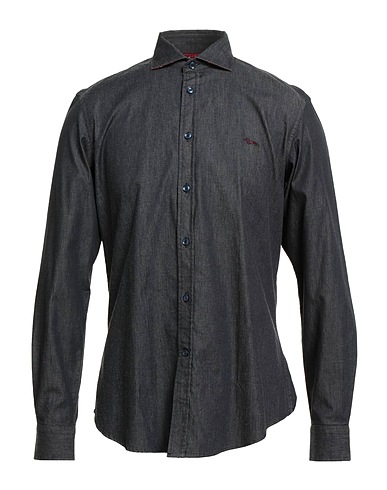 regular-fit shirt, chambray, stretchy fabric, solid color, embroidered logo, classic collar, long sleeves, buttoned cuffs, button fastenings, machine wash or dry clean, do not bleach, tumble dry