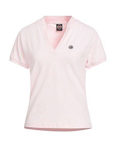 basic tee, piqué, stretchy fabric, solid color, brand logo, v-neck, short sleeves, machine wash, do not bleach, do not tumble dry