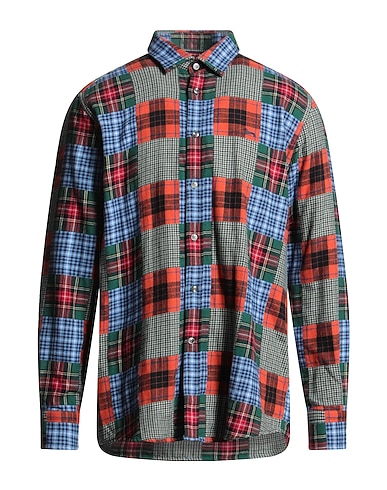 regular-fit shirt, flannel, patchwork, embroidered logo, classic collar, long sleeves, buttoned cuffs, button fastenings, hand wash or dry clean, do not bleach, do not tumble dry