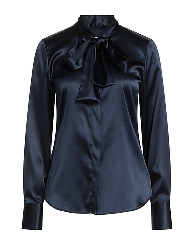 bow shirt, satin, stretchy fabric, solid color, no appliqués, long sleeves, buttoned cuffs, concealed button fastenings, machine wash or dry clean, do not bleach, do not tumble dry