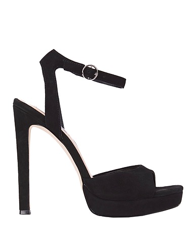 sandals, suede, solid color, buckle, buckle-fastening ankle strap, square toe, stiletto heel, fully lined, rubber sole, contains non-textile parts of animal origin
