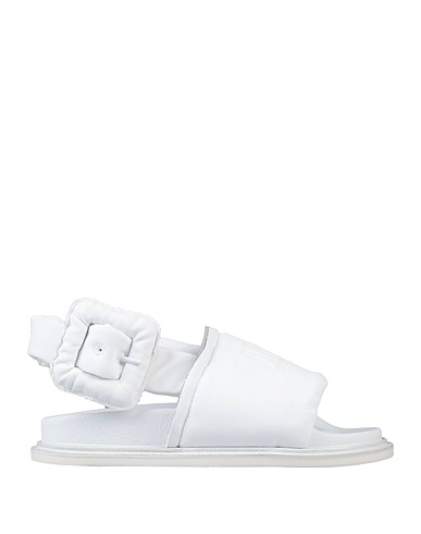 ankle strap sandals, coated fabric, solid color, brand logo, leather lining, round toe, flat, leather sole, contains non-textile parts of animal origin