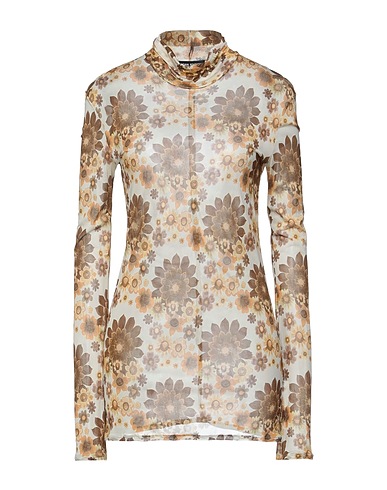 top, crepe, floral-print, no appliqués, turtleneck, long sleeves