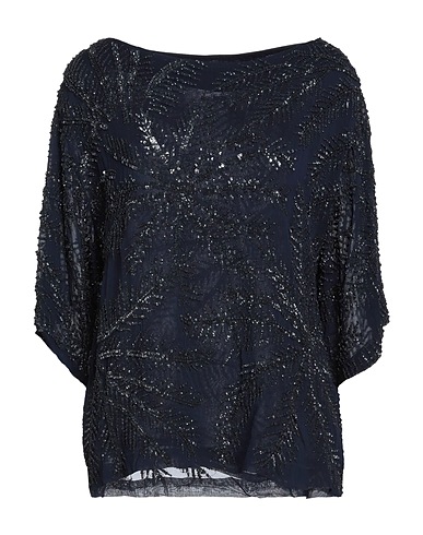 top, crepe, solid color with appliqués, sequins, scoop