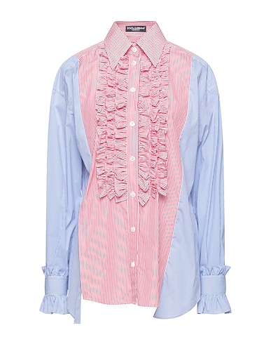 ruched shirt, woven, ruffles, striped, classic collar, long sleeves, buttoned cuffs, button fastenings, no pockets