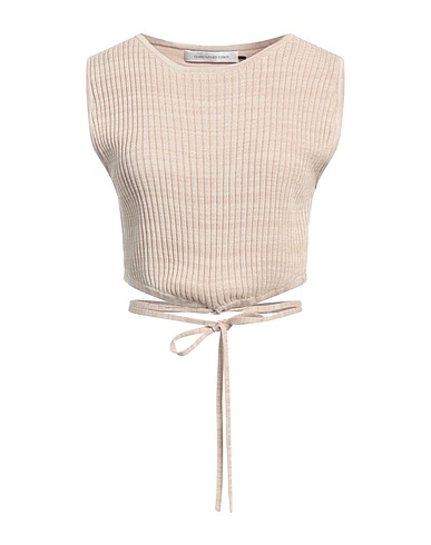 top, knitted, lightweight knit, mélange, no appliqués, crewneck, sleeveless, hand wash, do not tumble dry