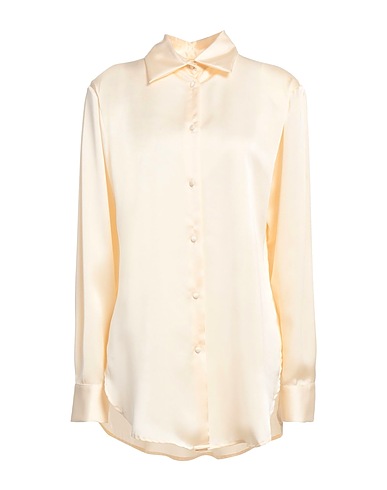 shirt, satin, solid color, no appliqués, classic collar, long sleeves, shoulder pads, buttoned cuffs, button fastenings, stretch