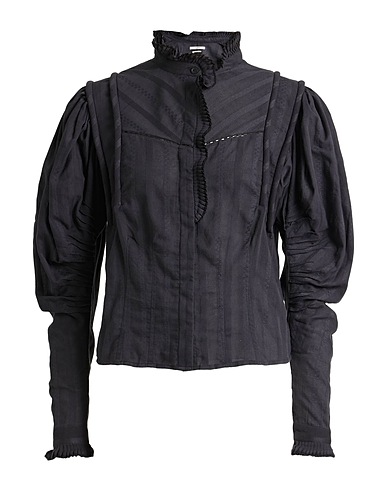 ruched top, woven, striped, gathered, mandarin collar, long sleeves, buttoned cuffs, concealed button fastenings