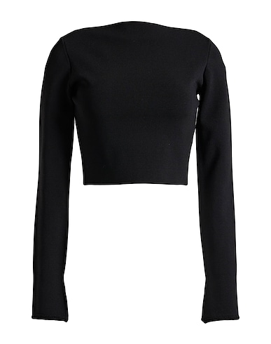 crop top, knitted, lightweight knit, solid color, no appliqués, scoop neckline, long sleeves, stretch