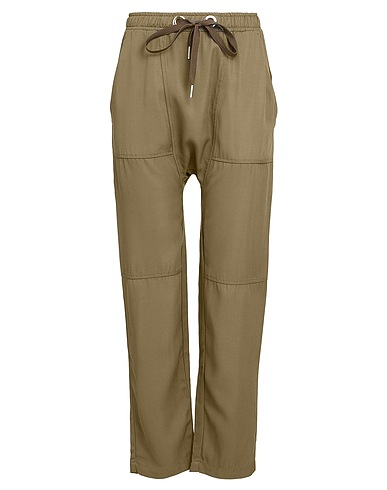 twill, no appliqués, solid color, high waisted, elasticized waist, relaxed fit, drawstring fastening, multipockets, dry clean, do not bleach, do not tumble dry, cropped, tapered pants