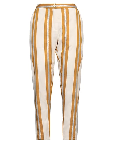 woven, lamé, no appliqués, striped, mid rise, tapered leg, regular fit, 1 button, zipper fastening, multipockets, dry clean, do not tumble dry, do not bleach, chinos