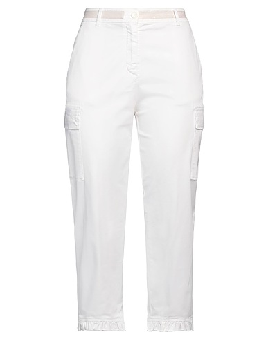 twill, lamé, embellished, ruffles, solid color, high waisted, straight leg, regular fit, zipper fastening, 1 button, multipockets, stretch, dry clean, tumble dry, do not bleach, cargo