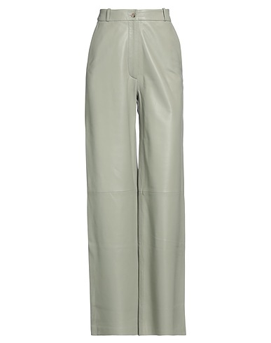 leather, no appliqués, solid color, high waisted, belt loops, straight leg, regular fit, zipper closure, 1 button, multipockets, contains non-textile parts of animal origin, pants
