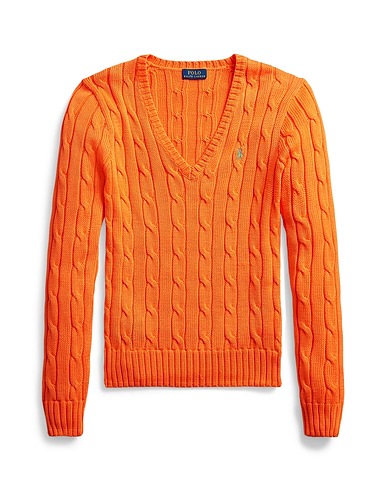 knitted, cable stitch, logo, lightweight knit, v-neck, basic solid color, long sleeves, no pockets