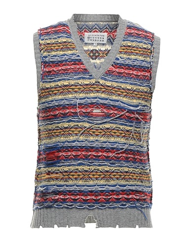 knitted, no appliqués, medium-weight knit, v-neck, stripes, sleeveless, no pockets, mélange
